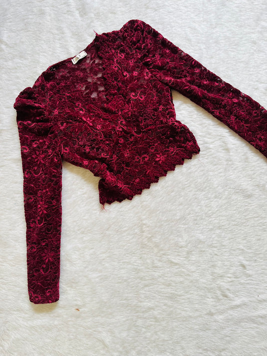 Wine lacy vneck top