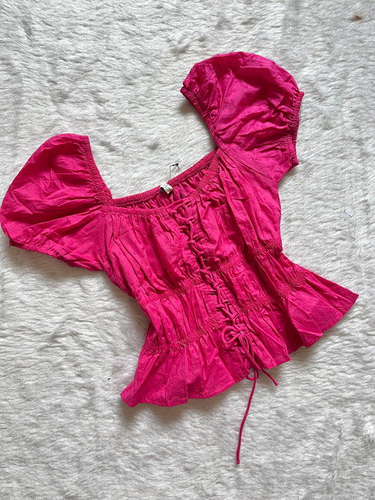 Hot Pink puffed sleeve top