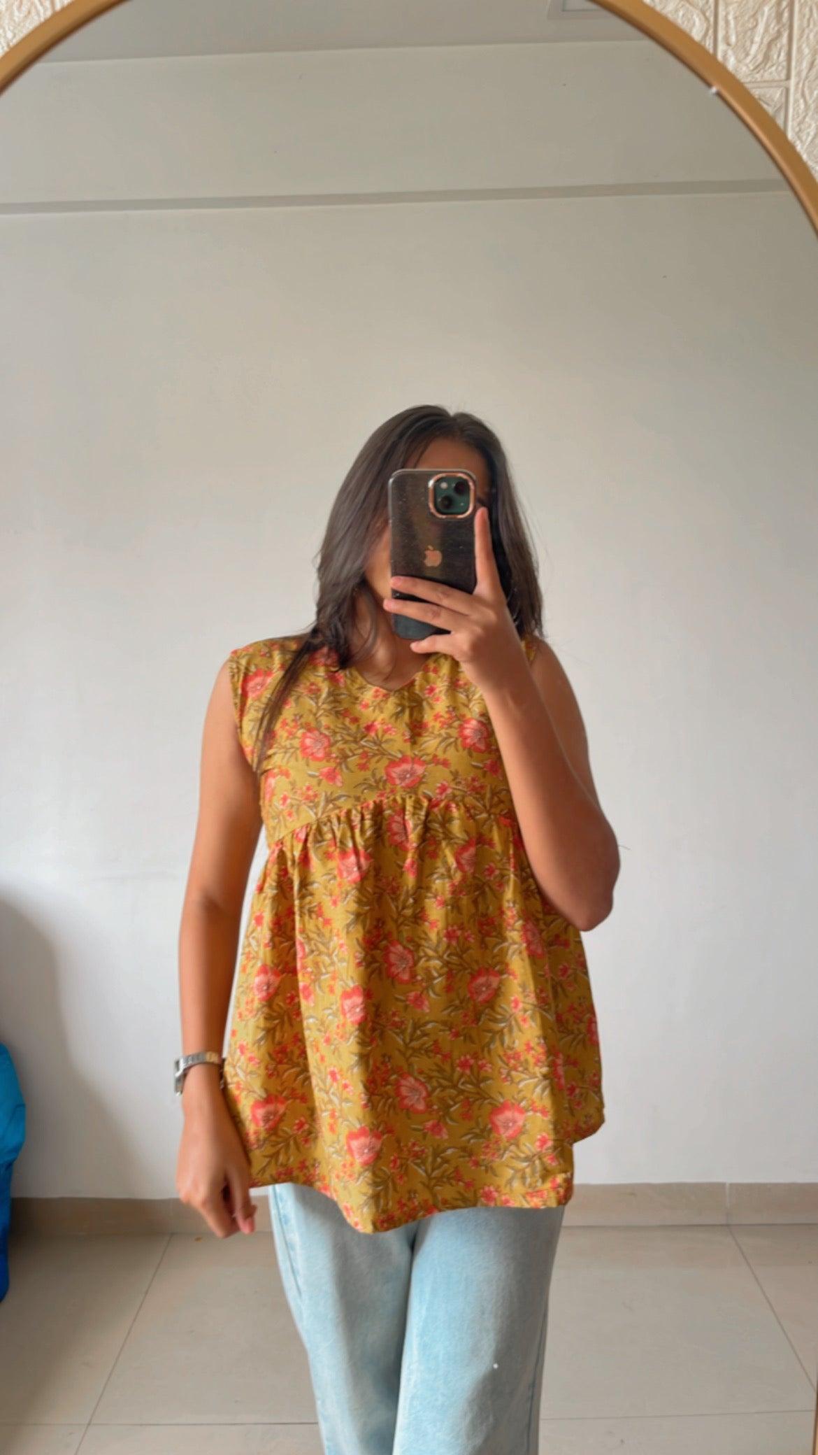 Mustard printed short kurti